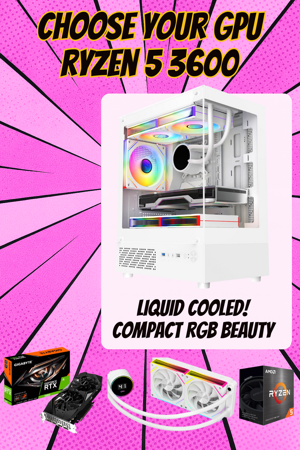 Compact 1080p gaming PC • Matching colour build • Optional ray tracing GPU