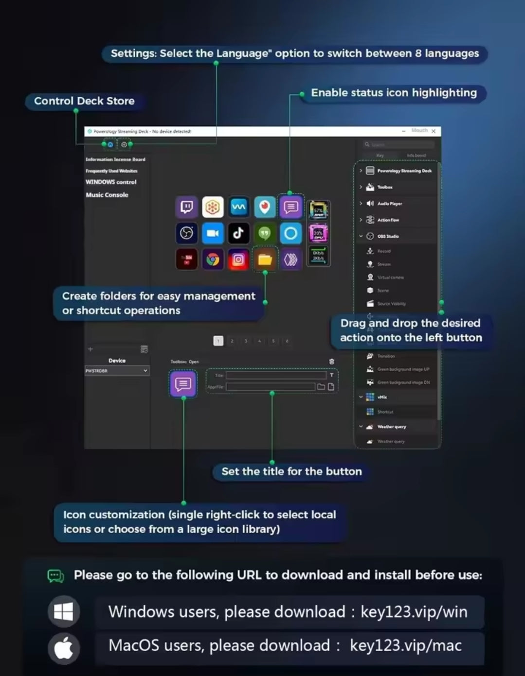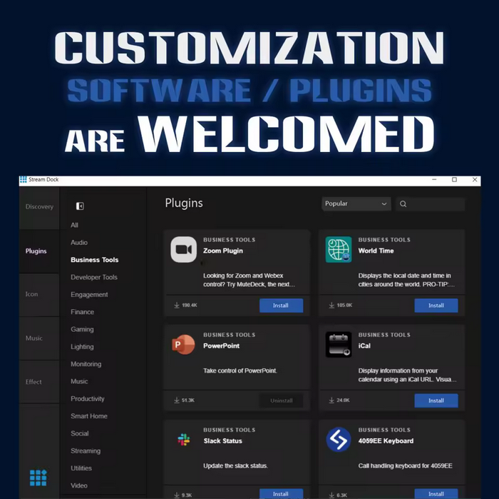 Full Integration: Works with OBS, Twitch, YouTube, Zoom, PowerPoint, Spotify, Philips Hue & more.