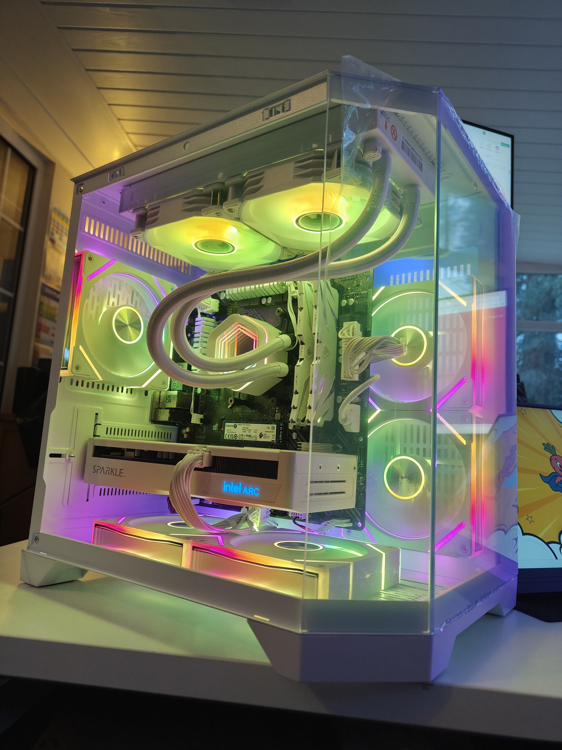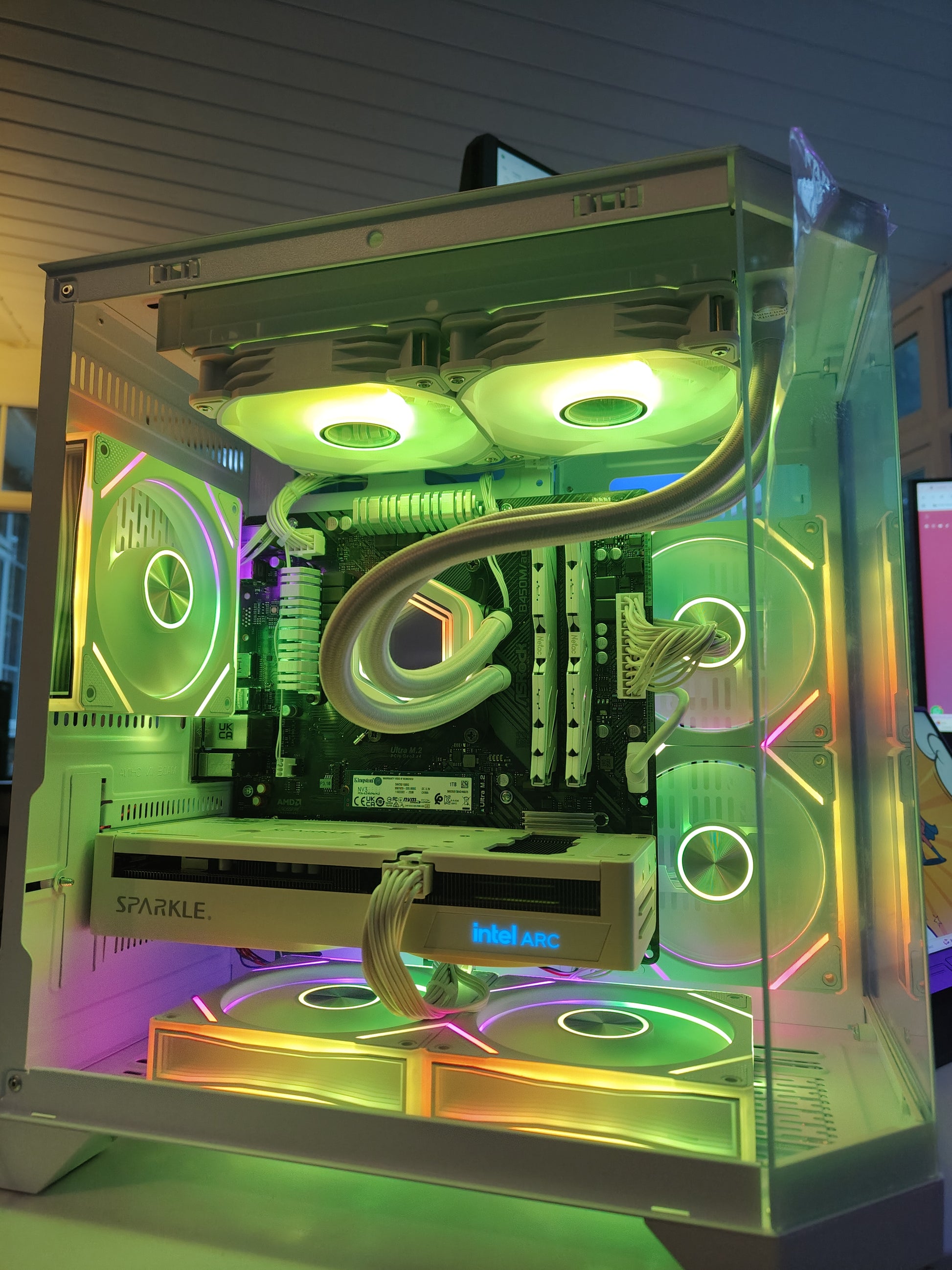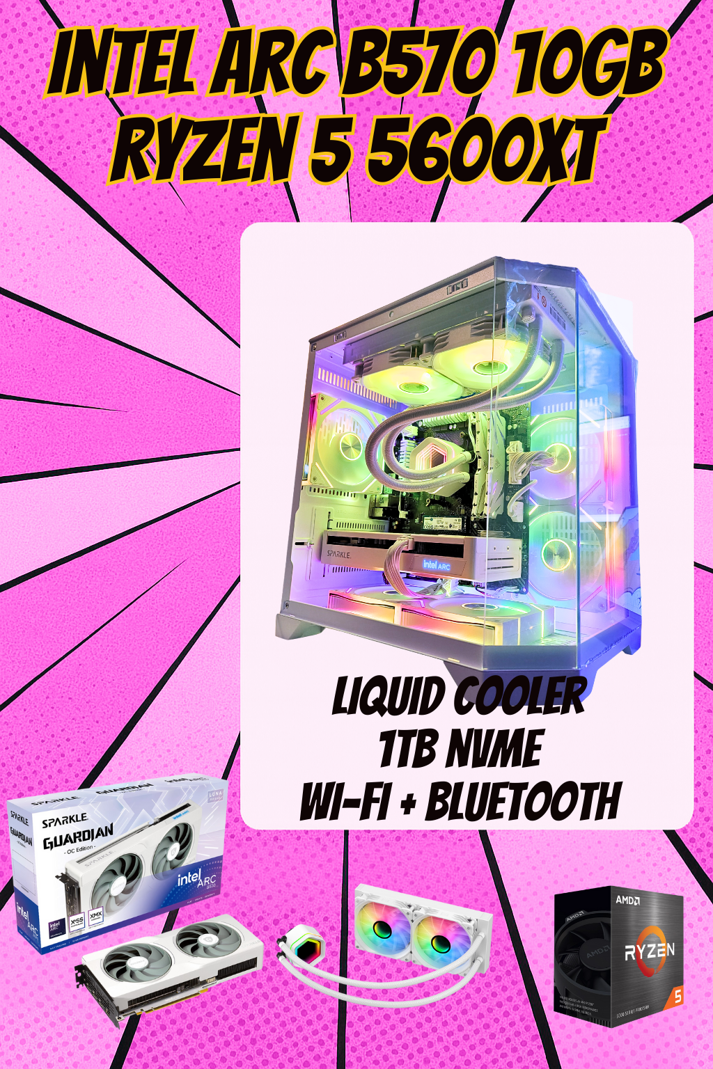 | 🎮 Graphics Card | Intel Arc B570 10GB — overclocked edition, 10GB GDDR6 VRAM, ReBAR enabled. White or Blue depending on your choice |