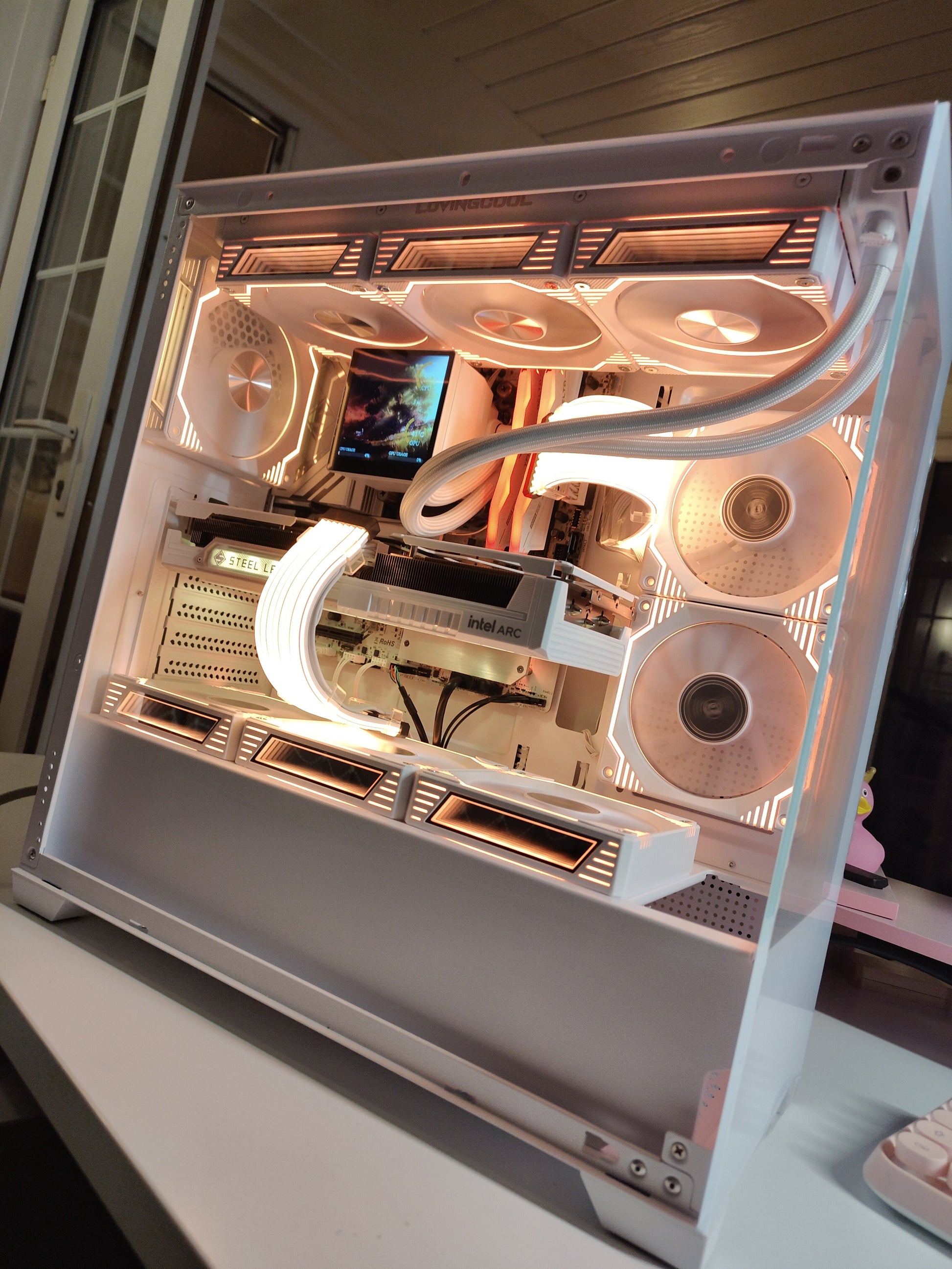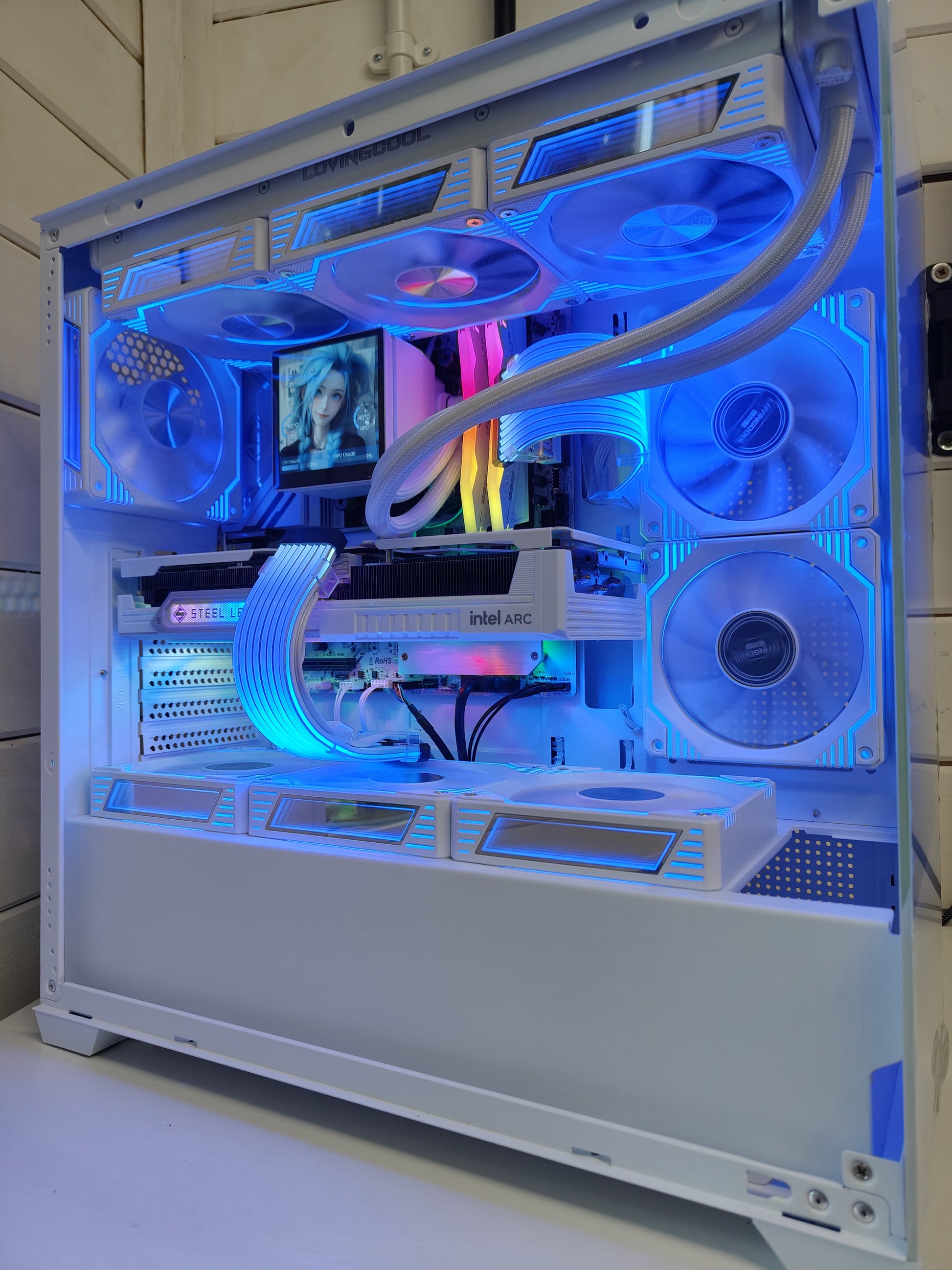 โ๏ธ Cooling: LovingCool 360mm AIO White with Custom Display Screen + 6x matching ARGB fans