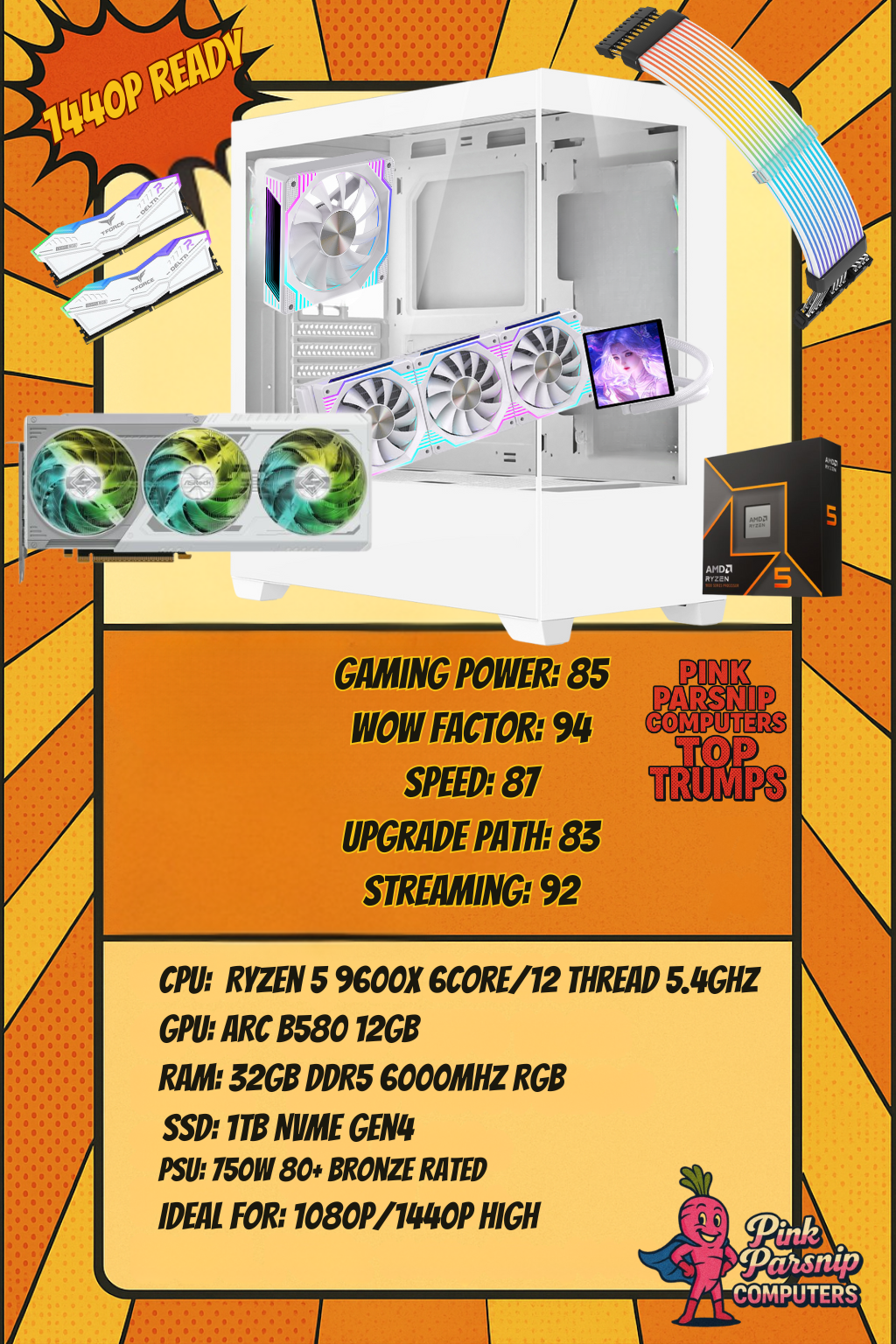 Lydia AM5 โ Ryzen 5 9600X | Arc B580 12GB | 32GB DDR5 | 1TB NVMe | 360mm AIO w/ Screen