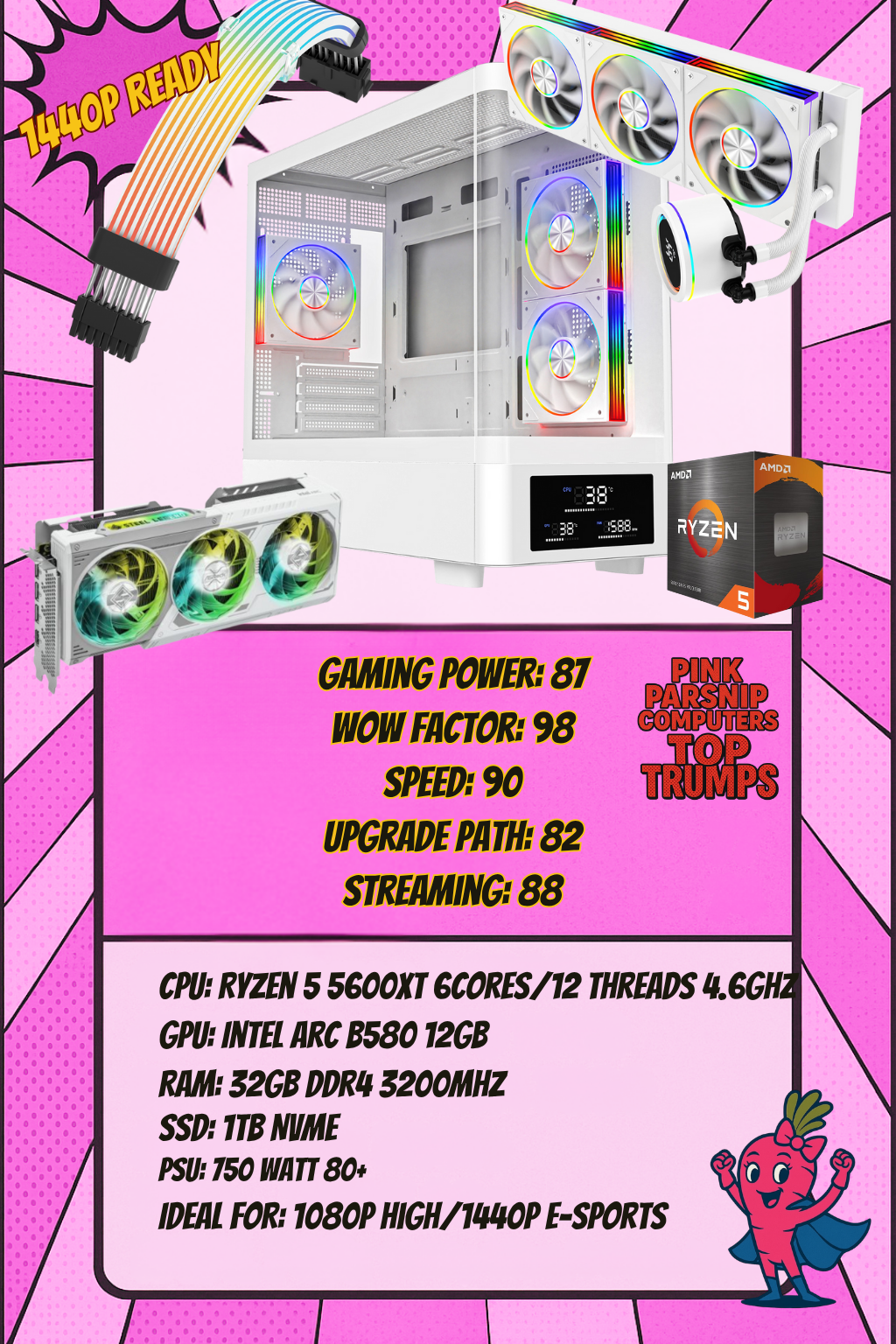 The CraftyBoiii Edition – White Steel Legend Ryzen 5 5600XT | Arc B580 12GB | 32GB RAM | 1TB NVMe | LCD AIO | Strimmer RGB |