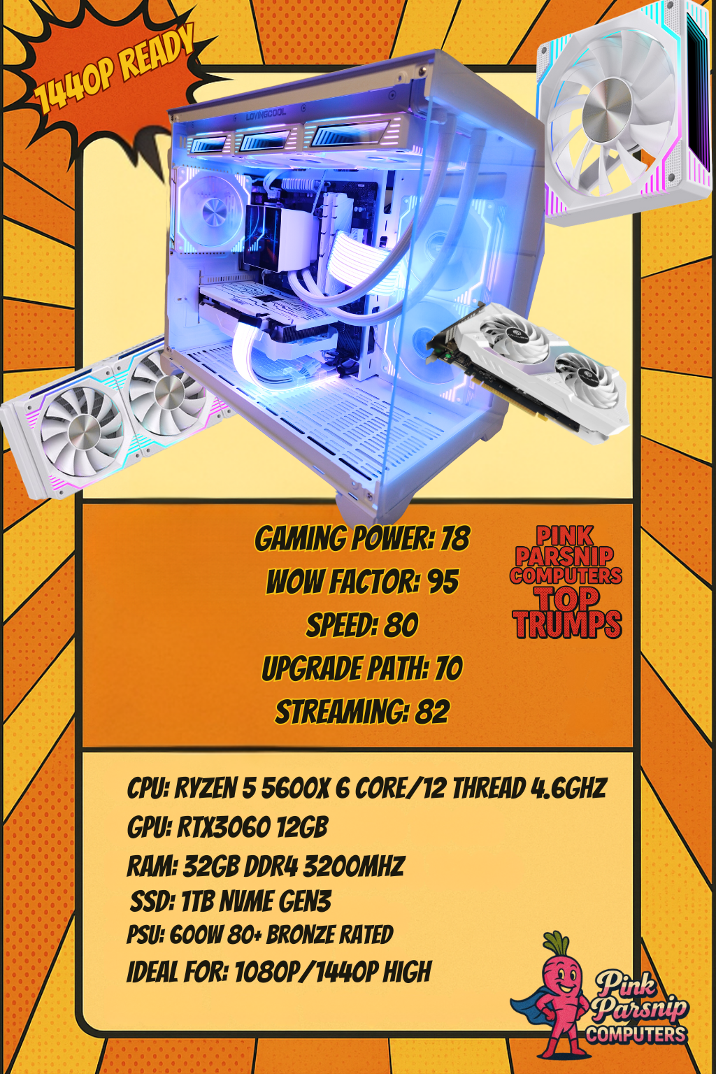 The Kerthika โ Ryzen 5 5600X | RTX 3060 12GB | 32GB RAM | 1TB NVMe | Pink & White Edition